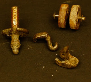 1) The original piece was a bronze casting, and whoever made the original master had worked to make a beautiful piece: smooth curved shape, no sharp edges. SketchUp, with a bit of work, can add such curves. However, once the shape stops being a simple rectangle, it's really painful to adjust the position of axle holes and precise measurements. As in machining, I learned to start by making a very simple shape, add the high-accuracy features, print a model, and test whether it fits and works mechanically. Once the shape works, then I started playing with the design.